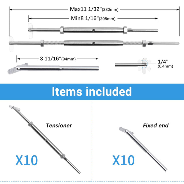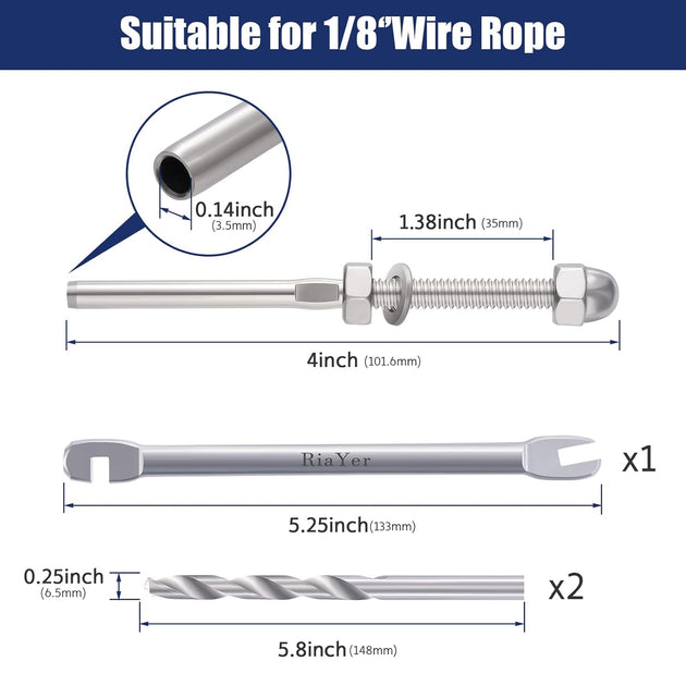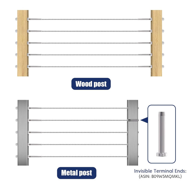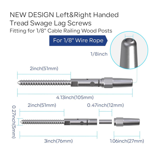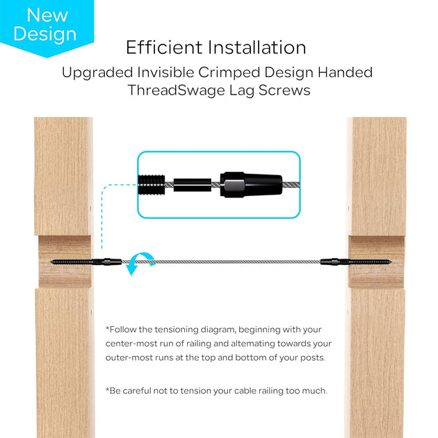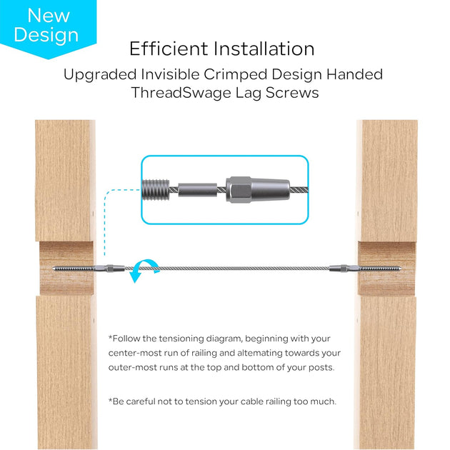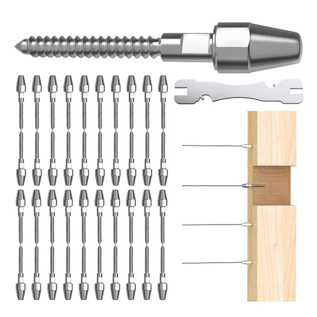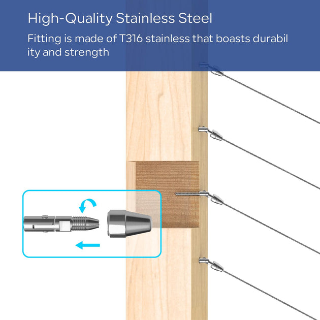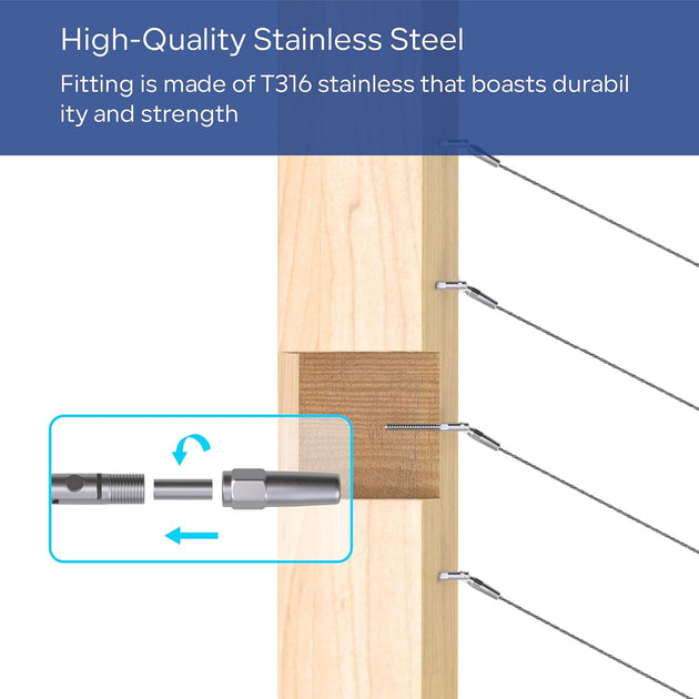 Patented Invisible Swage Cable Railing Kit - Left & Right Thread (Rust-Free Design)