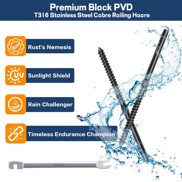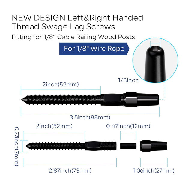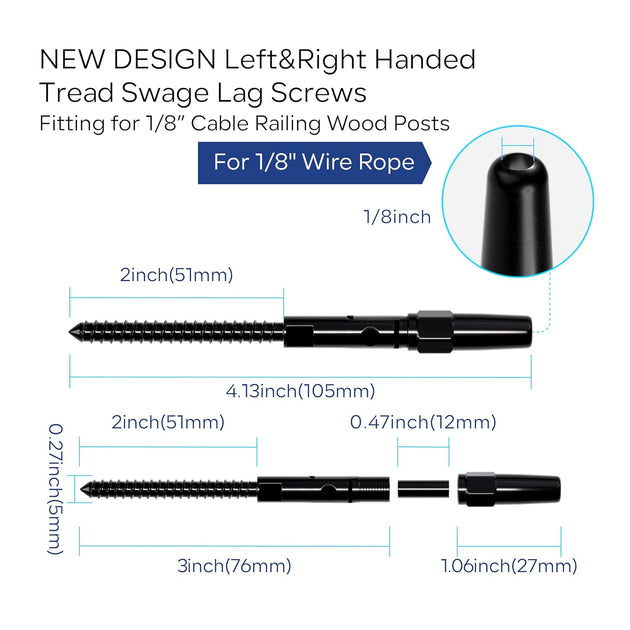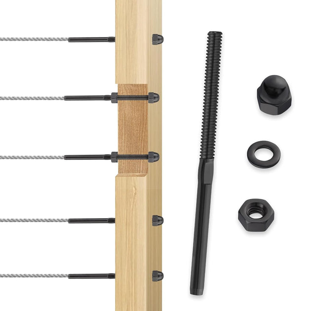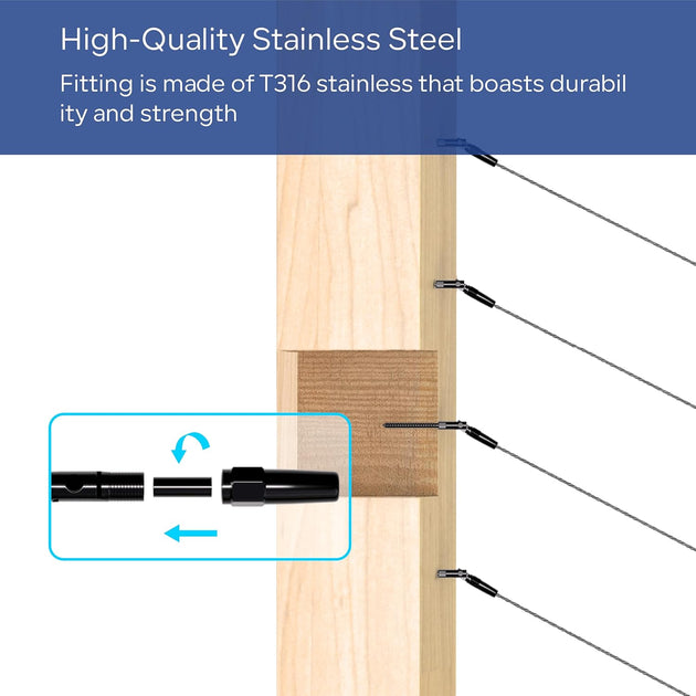 Patented Black Invisible Swage Cable Railing Kit - Left & Right Thread (Rust-Free Design)