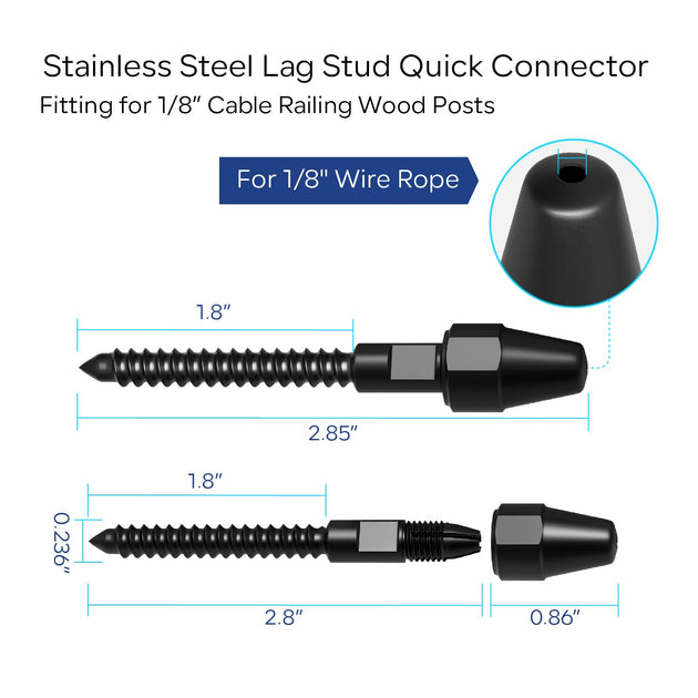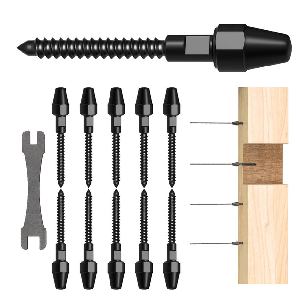 Black Titanium PVD Threaded Stud Cable Railing Kit - For Metal & Wood Posts (1/8" System) (6 inch)