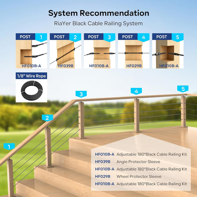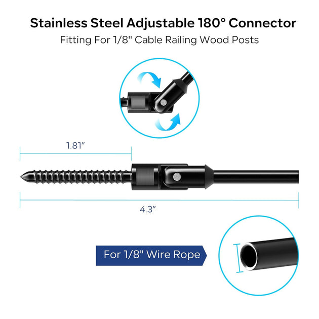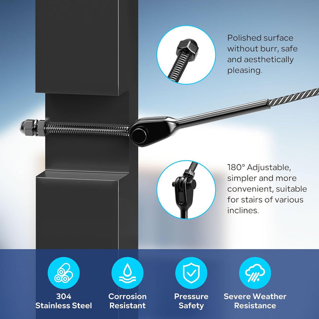 Patented Black Multi-Angle Swageless Cable Railing Kit - 0-180° Adjustable (No Crimper Needed) (Copy)