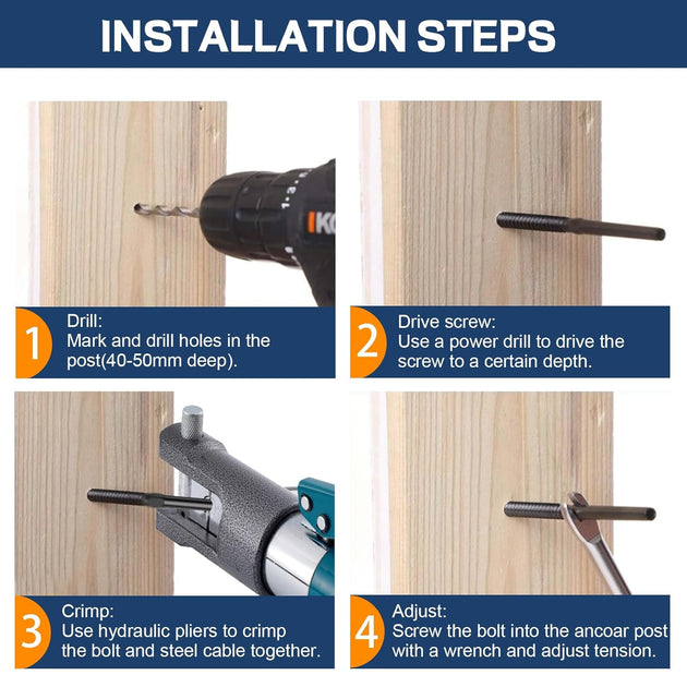 Patented Multi-Angle Swageless Cable Railing Kit - 0-180° Adjustable (No Crimper Needed)