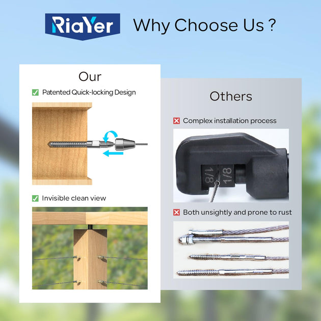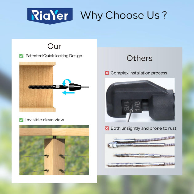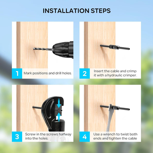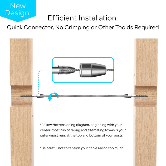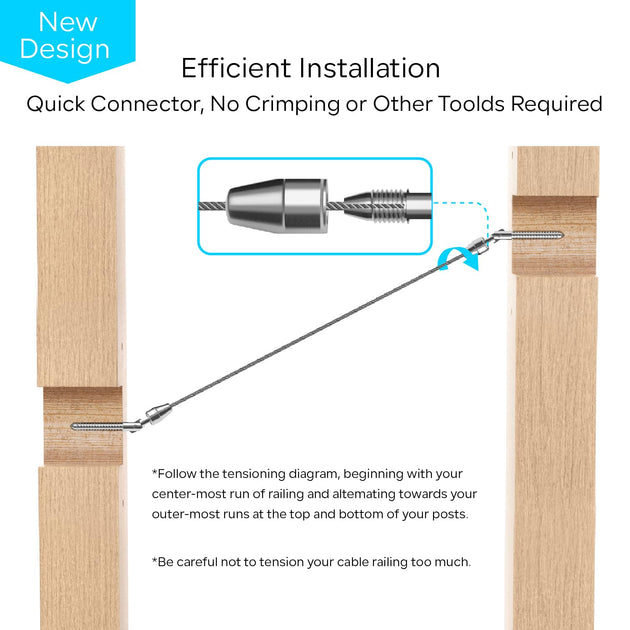 QuickLock Swageless Cable Railing Kit - No Crimper Needed (1/8" System)