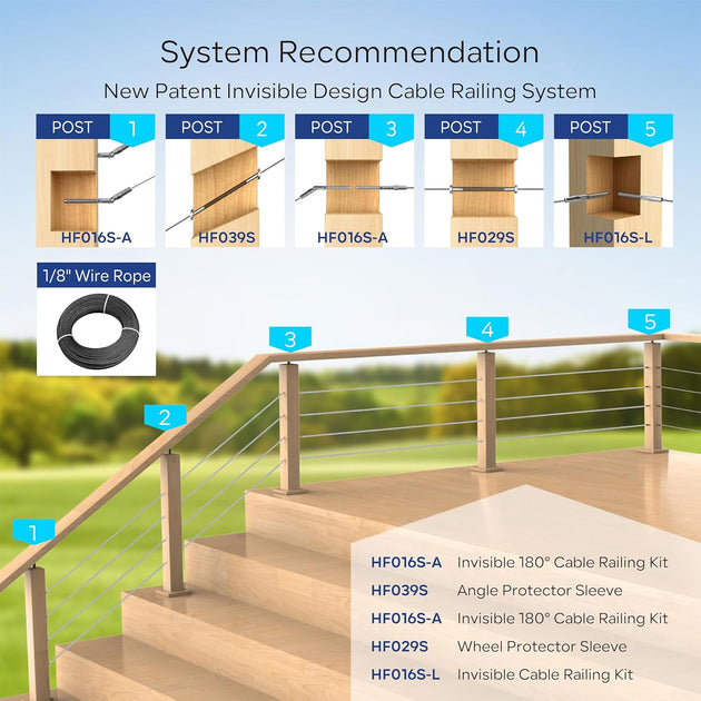 Patented Invisible Adjustable Cable Railing Kit - 0-180° for Stairs (Rust-Free Design)