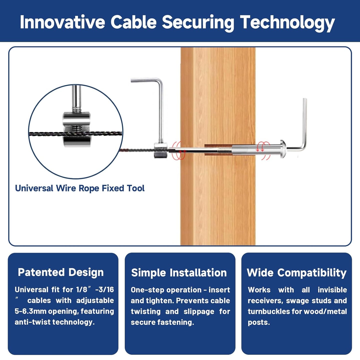 - 🔧 Secure Tensioning: Features an internal hex mechanism that allows you to tighten the cable invisibly using the included hex key tool.