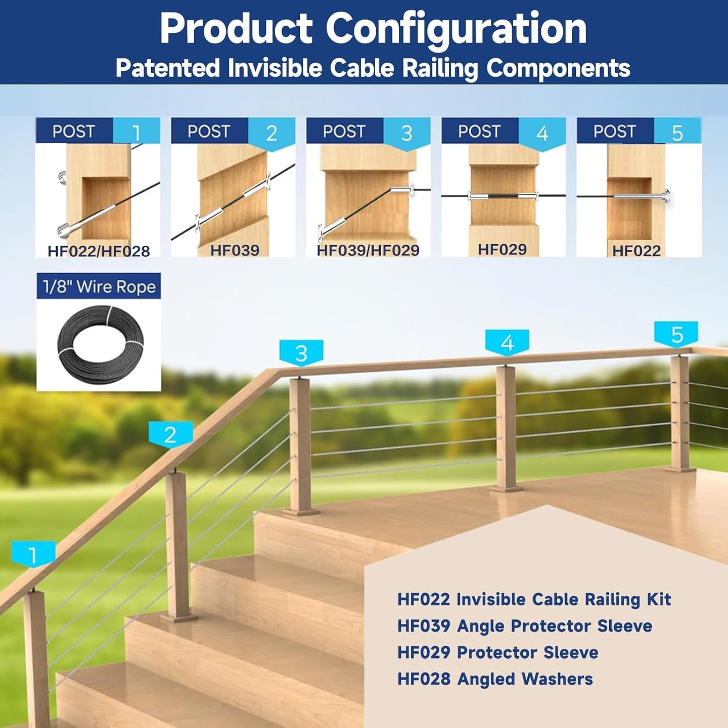 Patented Multi-Angle Swageless Cable Railing Kit - 0-180° Adjustable (No Crimper Needed)