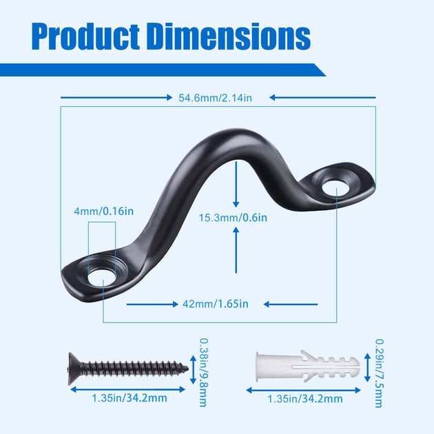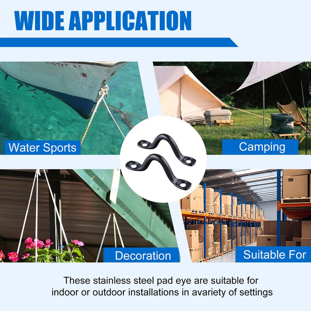 Black 316 Stainless Steel Pad Eye Straps | Marine Footman Loops & Kayak Tie Downs (Hardware Included)
