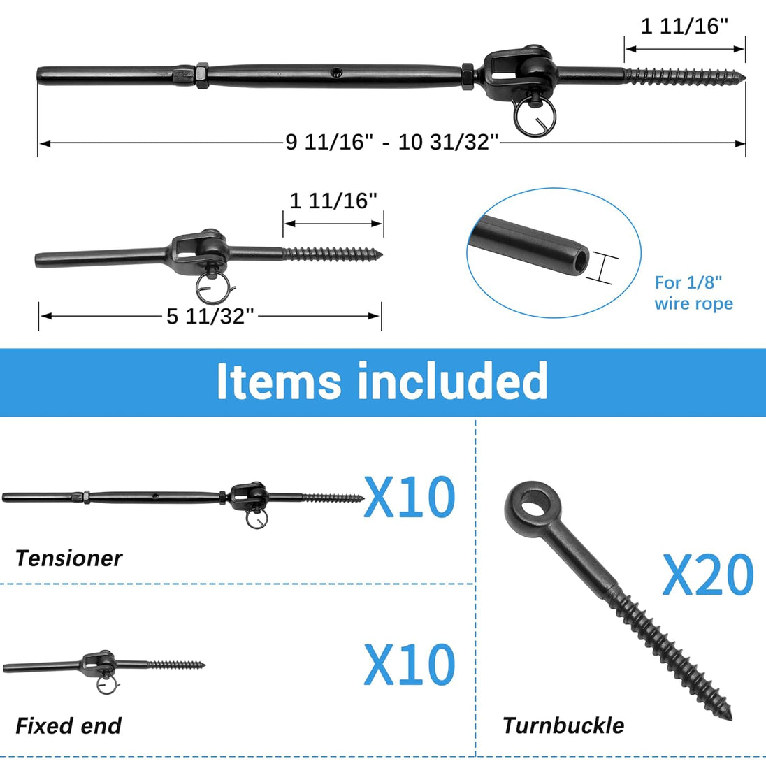 | Cable Compatibility | Fits 1/8" (3.2mm) Wire Rope |