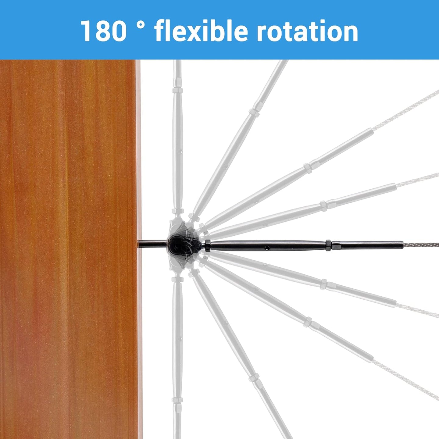 Conquer any angle with the 180° Adjustable Toggle System. Unlike fixed hardware, this kit features a flexible "Jaw and Eye" mechanism that acts like a hinge, allowing for 0 to 180 degrees of vertical or horizontal adjustment. It is the go-to professional choice for staircase railings and complex deck layouts.