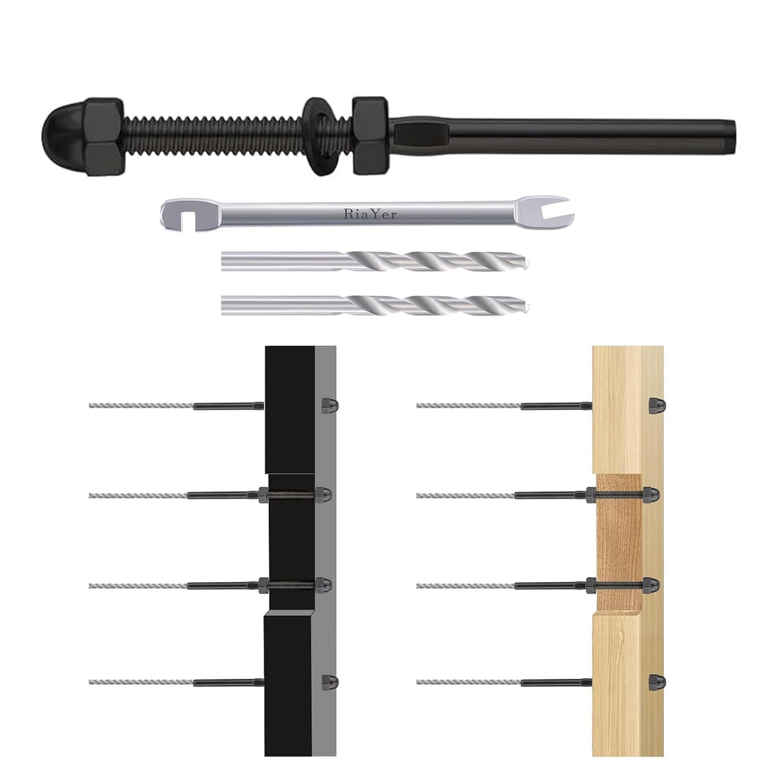 Black Titanium PVD Threaded Stud Cable Railing Kit - For Metal & Wood Posts (1/8" System) (6 inch)