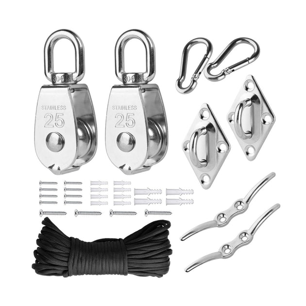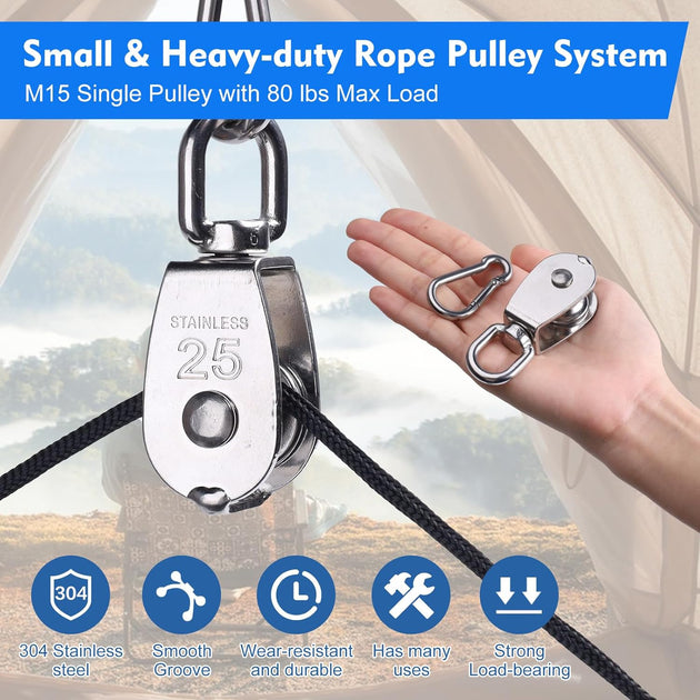 304 Stainless Steel Swivel Pulley Block System | Rope Hoist Kit (M15 & M25 Sets)