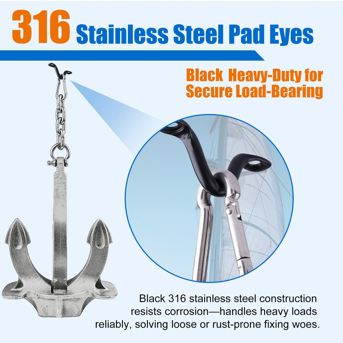 - Marine Grade 316 Stainless Steel: The core material is high-quality 316 steel, ensuring it won't rust even if the black coating gets scratched. Perfect for ocean use.