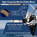 - ⚓ Hybrid Material Engineering: Optimized for performance—T316 Stainless Steel for structural straps (rust-proof), Aluminum for the cam jaws (grip), and reinforced Nylon for the sheaves (lightweight).