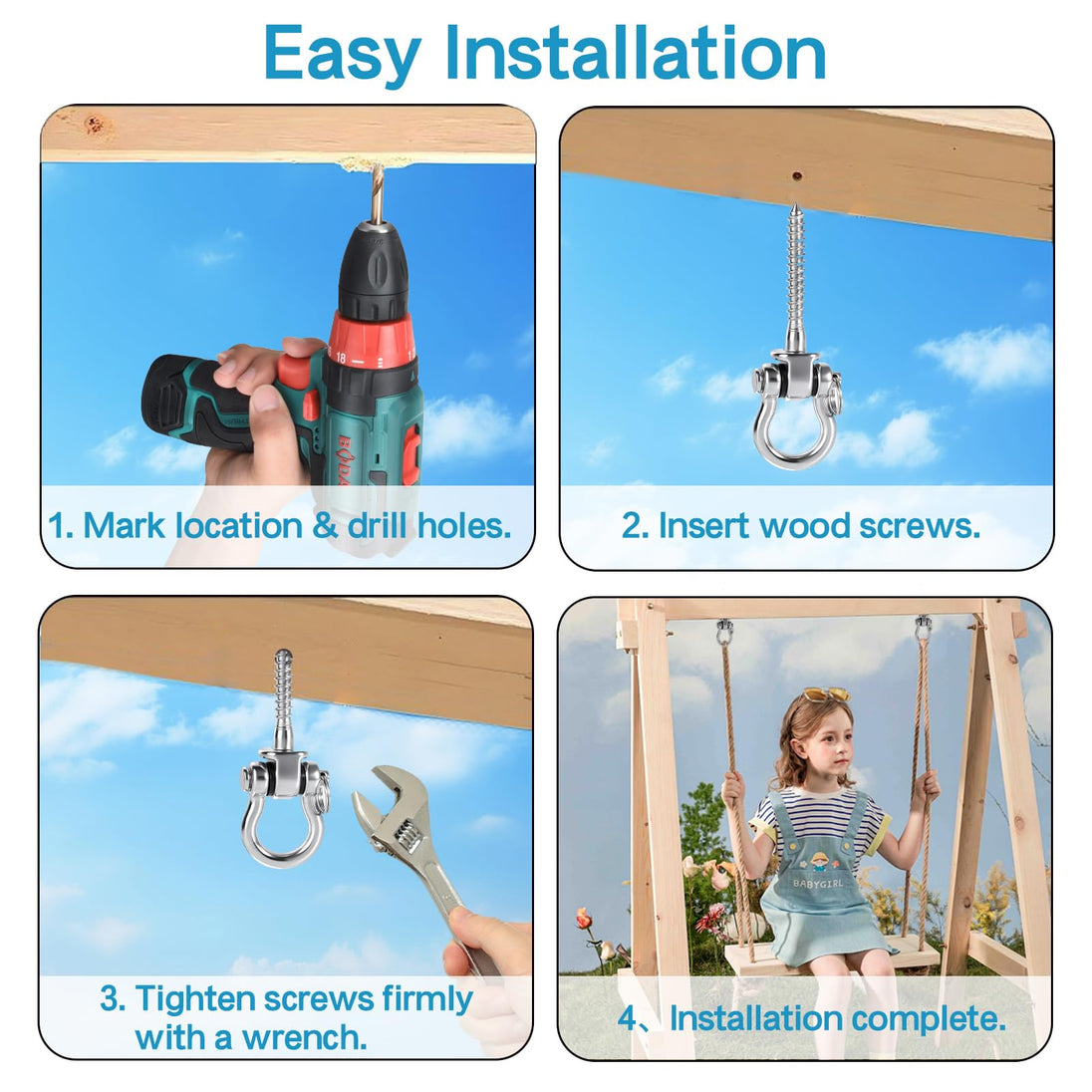 Upgrade your playground or patio with the RiaYer Heavy Duty Swing Hangers. Engineered for silence and stability, these brackets replace standard squeaky hooks with a premium bearing system locked by sturdy circular rings. Crafted entirely from 304 stainless steel, they offer frictionless 180° motion for porch swings, yoga hammocks, and heavy punching bags. We’ve even included the matching drill bit, so you have everything you need for a professional installation right out of the box.