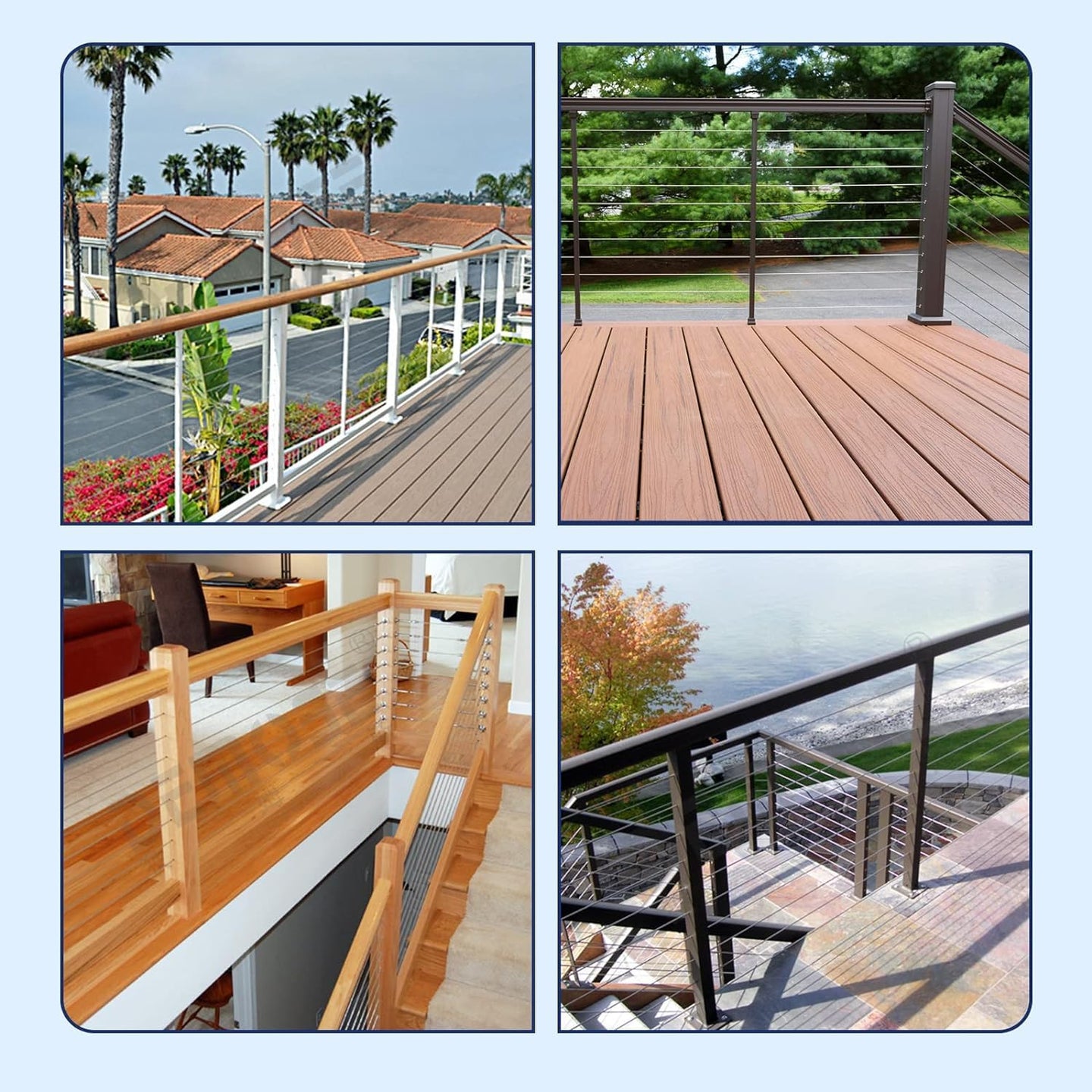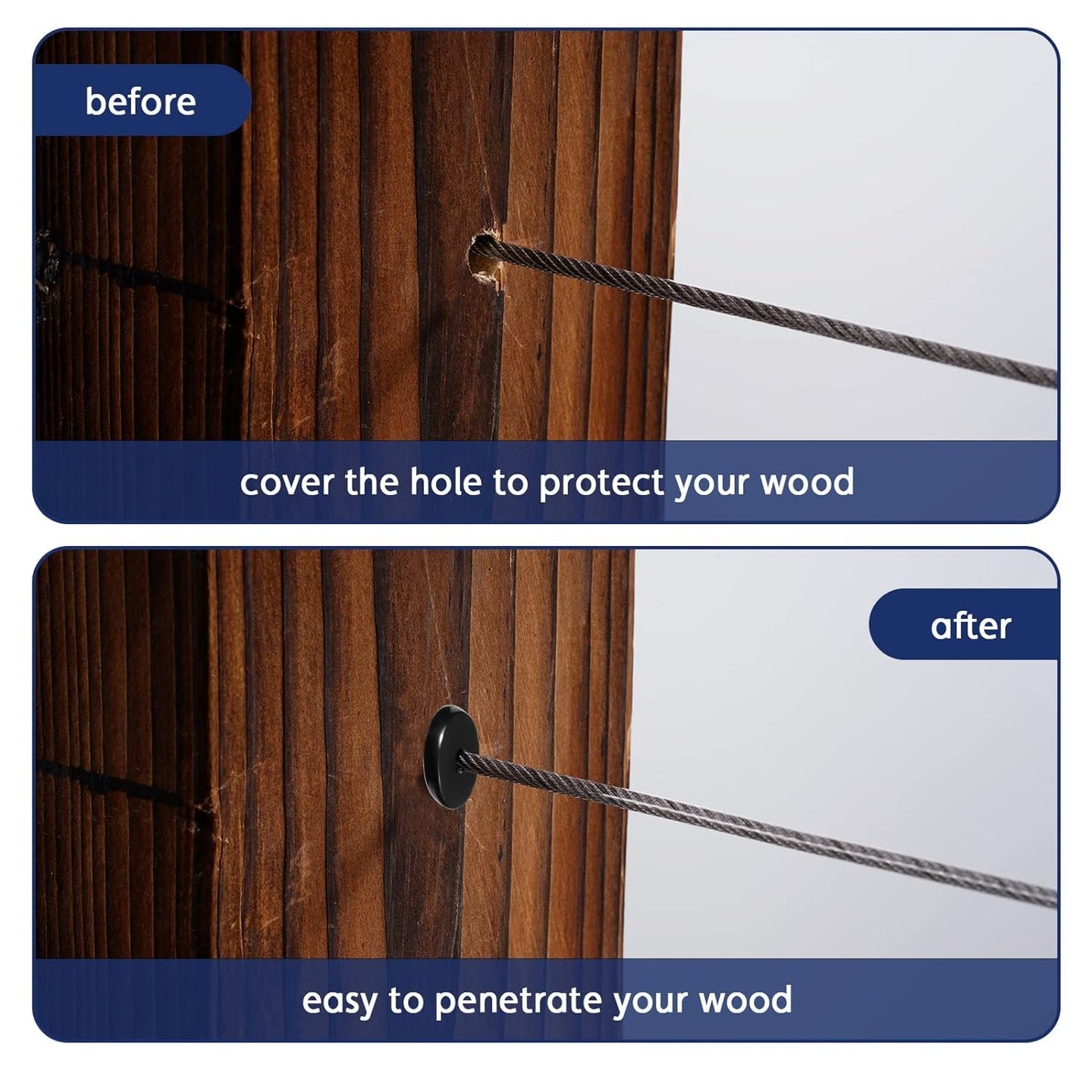 - 🛡️ Protects Wood Posts: On staircases, the tension force is diagonal. These sleeves absorb that force, preventing the 1/8" cable from "sawing" into the wood post, which is crucial for maintaining tension over time.