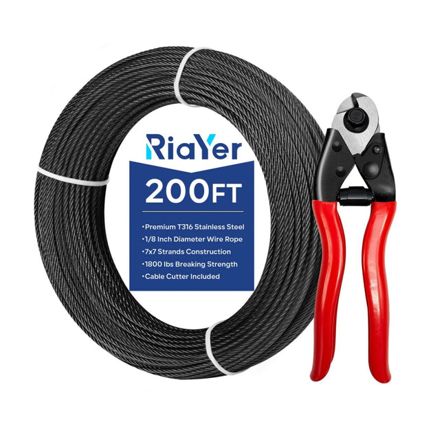 Black T316 Stainless Steel Wire Rope (1/8" | 7x7 Construction | Cutter Included)