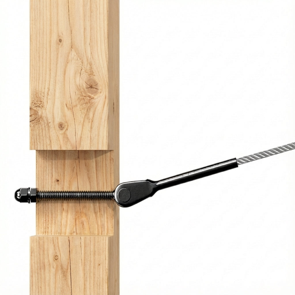 - ⚙️ Adjustable Thread Length (High Tension): The system features a long threaded range. By rotating the turnbuckle body or adjusting the nuts, you can significantly change the length of the hardware. This "Travel" allows you to pull the cable extremely tight and re-tension it easily in the future.