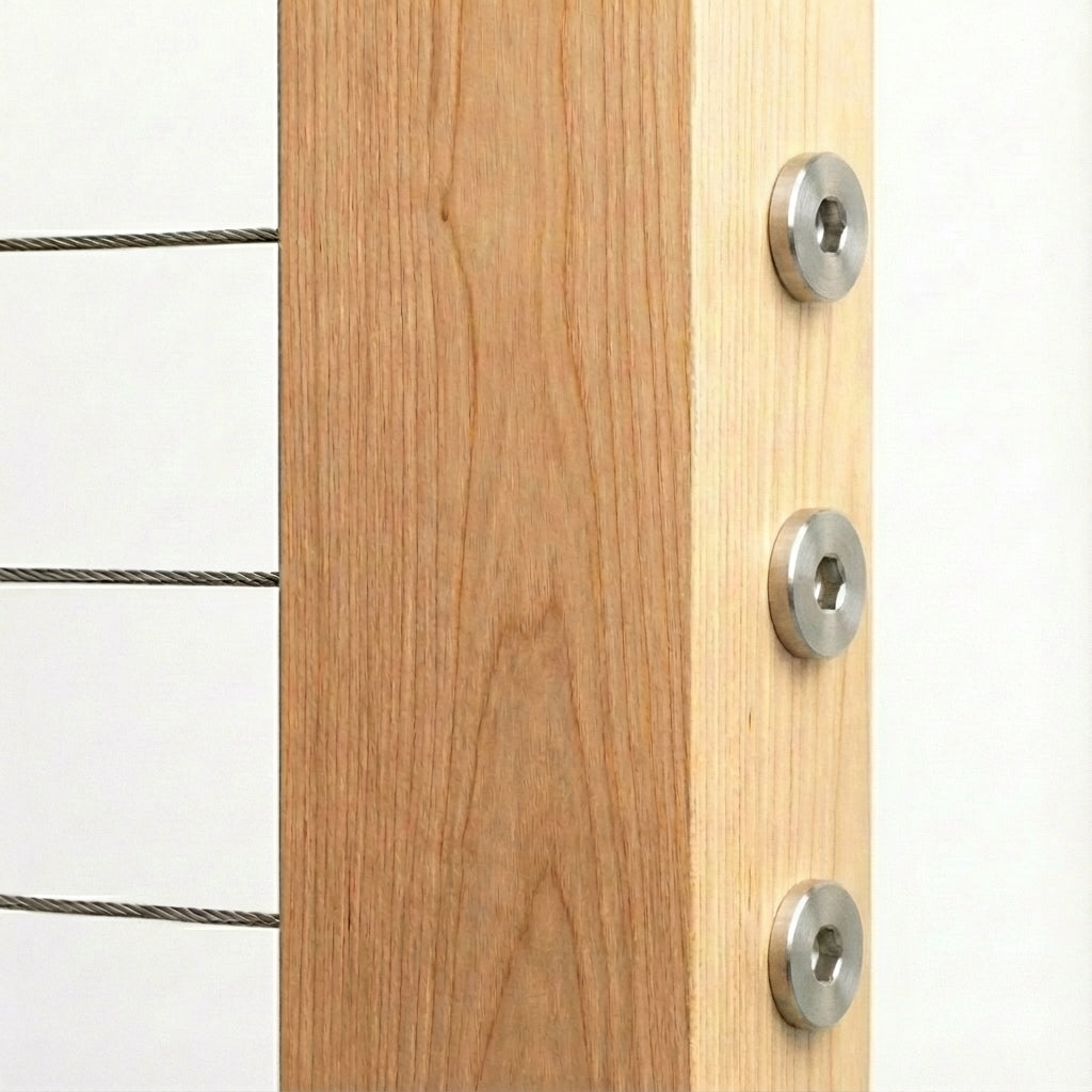 - Tension: Insert the hardware into the posts and tighten the receiver using a hex wrench until the cable is taut.