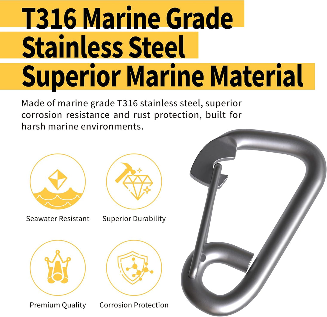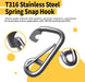 T316 Stainless Steel Marine Spring Snap Hook - Heavy Duty Carabiner Clip for Boat Rigging & Docking (2-Pack)