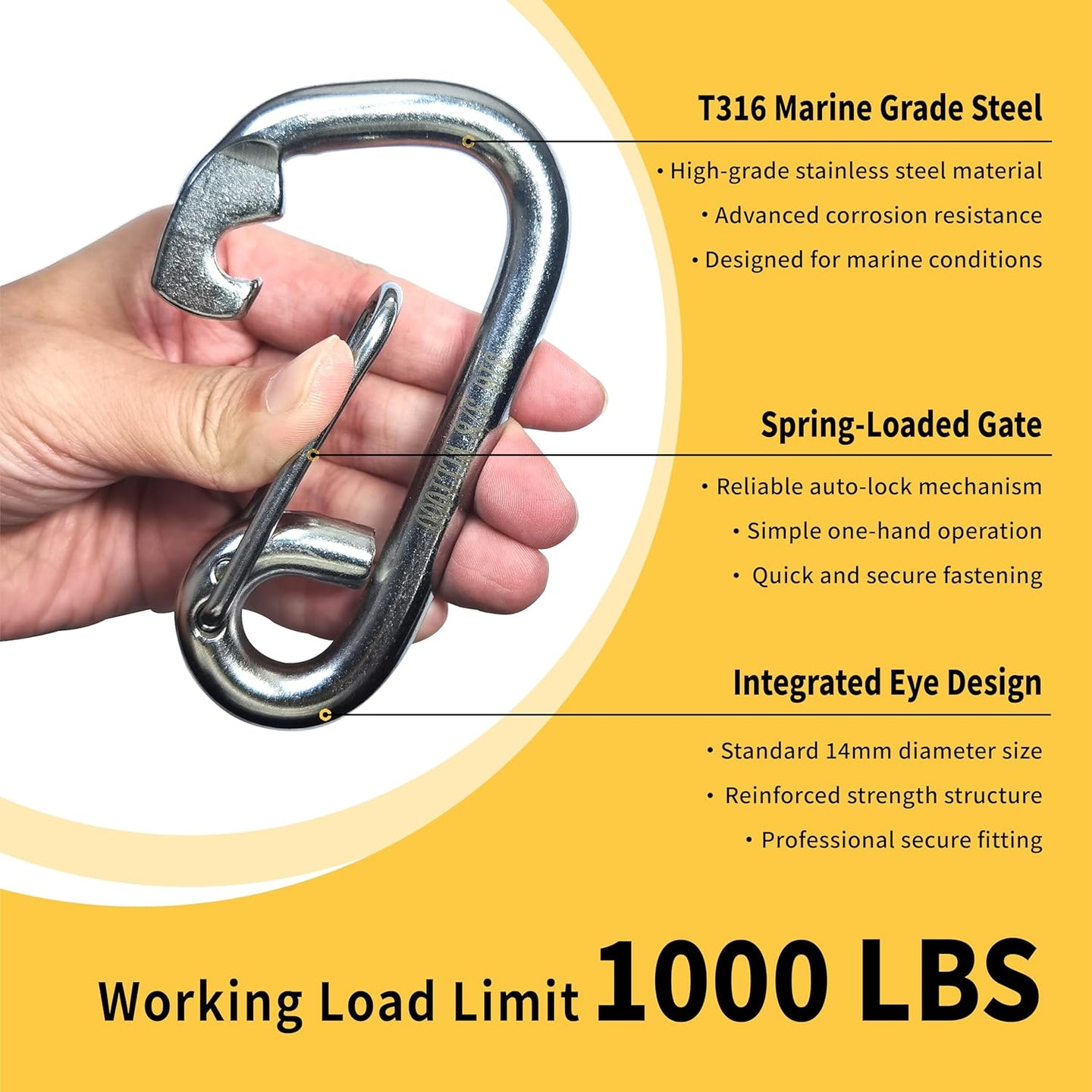 - Secure Locking Mechanism: Features a high-tension, heavy-duty stainless steel spring for quick, single-handed operation. The interlocking tooth design prevents accidental opening under load.