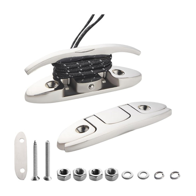 316 Stainless Steel Flip-Up Folding Dock Cleat | Flush Mount Mooring Hardware (4.5" & 6"
