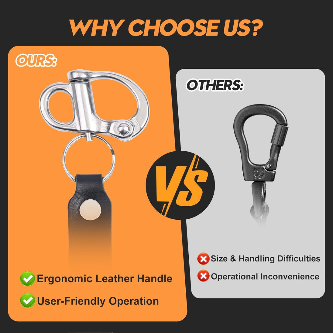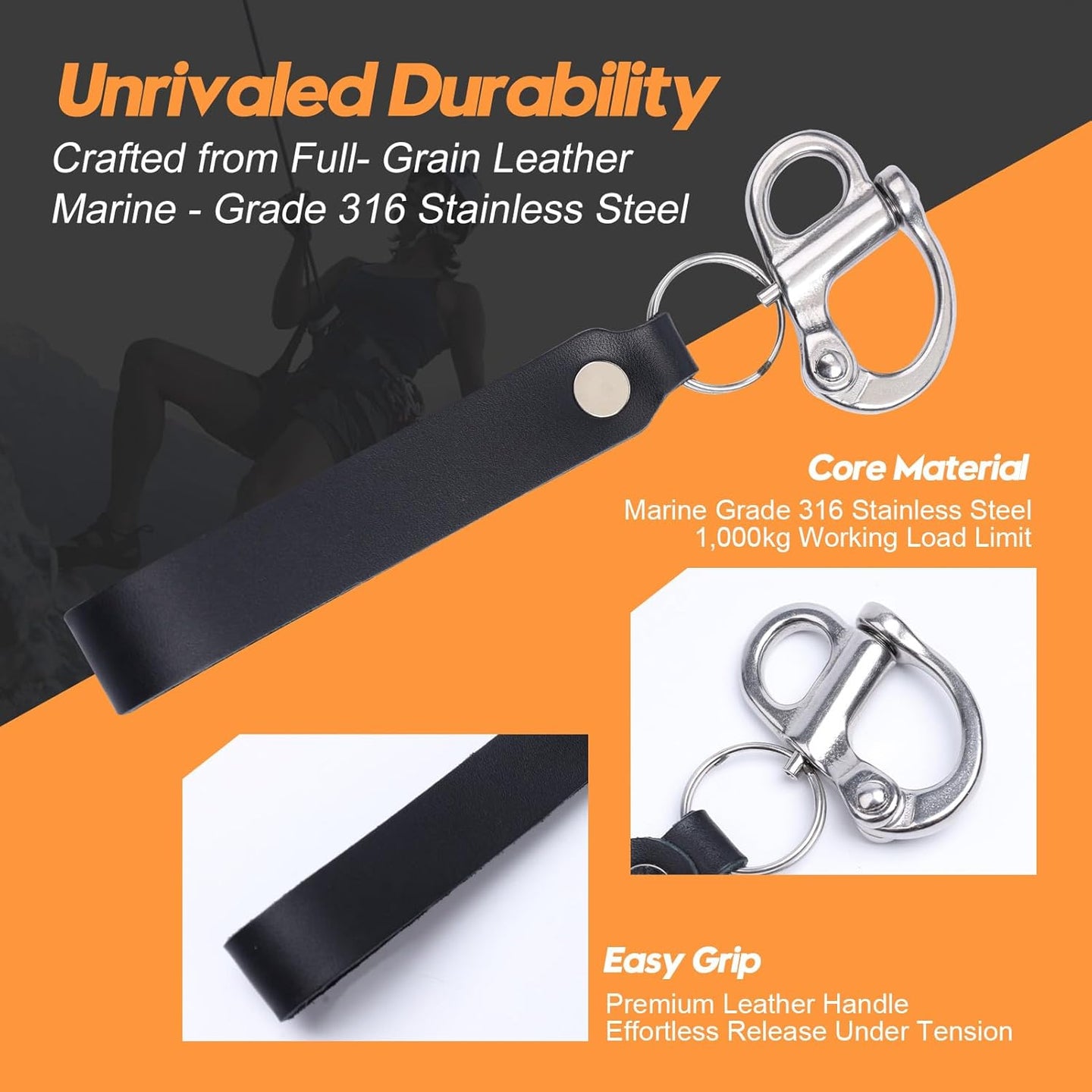 When speed is critical, the RiaYer Quick Release Snap Shackle delivers. Engineered for situations requiring instant detachment under tension, this shackle bridges the gap between rugged marine hardware and refined everyday carry (EDC). Crafted from solid 316 stainless steel with a genuine leather pull-tab, it is the ultimate solution for sailors, rigging professionals, and outdoor enthusiasts who refuse to compromise on reliability.