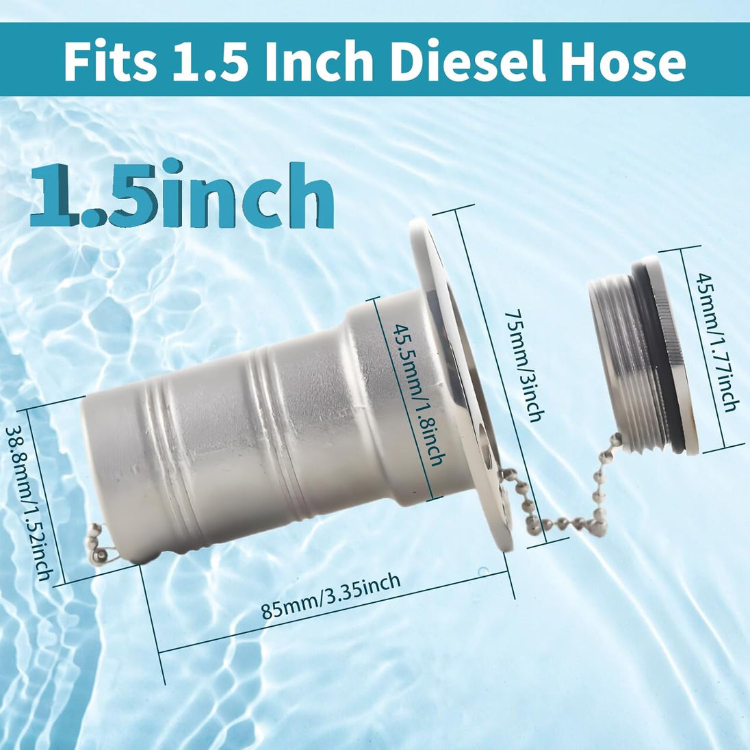 - 📏 Universal 1.5" Fit: The barbed filler neck is precision-sized (approx. 38.8mm) to create a tight, clamp-ready seal with standard 1-1/2" (38mm) marine diesel hoses.